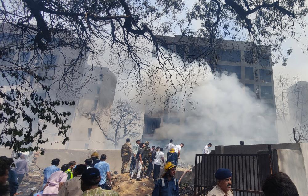 6月12日,在印度古吉拉特邦艾哈邁達巴德,人們在客機失事現場進行救援。新華社發