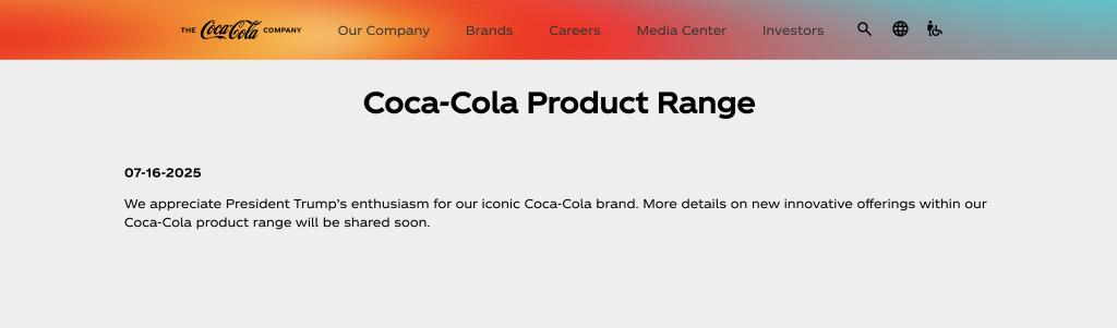 然而,與特朗普的言之鑿鑿相比,可口可樂公司的表態有所保留。該公司在官網上發佈聲明説:“我們感謝特朗普總統對我們標誌性可口可樂品牌的熱衷。我們將很快分享更多關於可口可樂產品系列中創新產品的詳細信息。”