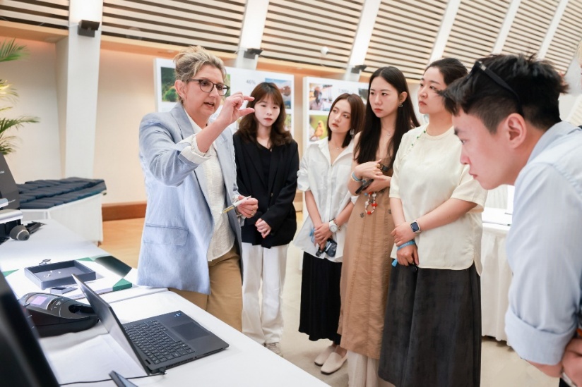 鑽石研發科學家Samantha Sibley則深入講解天然鑽石的核心知識與前沿鑑定技術,解析4Cs分級體系(切工、成色、淨度、克拉),並通過集團獨有的技術與儀器,引導參與者觀察天然裸鑽的生長紋理、內含物及色彩成分,幫助大家區分天然鑽石與合成鑽石。她還強調了集團對合成鑽石的3D原則,即Detection(專業檢測)、Differentiation(嚴格區分)和Disclosure(如實披露)。