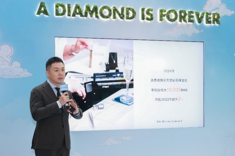 戴比爾斯集團天然鑽石亞太區資深市場經理吳凱則介紹了集團最新發布的2023-2024年度鑽石購買研究報告中的市場洞察及行業賦能計劃。他提到,2024年消費者購買天然鑽石珠寶的平均價格為10035元,較2022年有所提升,這一數據反映出市場對天然鑽石價值的認可。