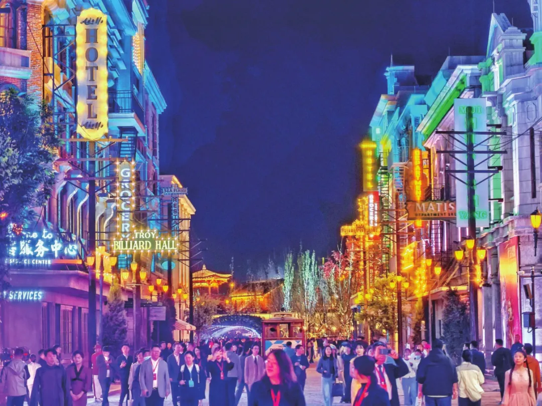 山東則推出眾多電影主題遊,覆蓋樂陵影視城、青島東方影都等。電影《抓娃娃》“沈馬”組合票房大賣,也帶火了青島旅遊,其中的大部分場景取景於四方機廠1900園區,也就是影片中馬繼業的“家”,生活氣息濃厚的有餘裏成為遊客打卡點。樂陵影視城是《唐探1900》取景地,搭建了“唐人街主題園區”,持續策劃“走進片場”活動,讓遊客體驗影視行業的台前幕後。青島東方影都是《流浪地球》《封神》系列的拍攝地,科技感十足。