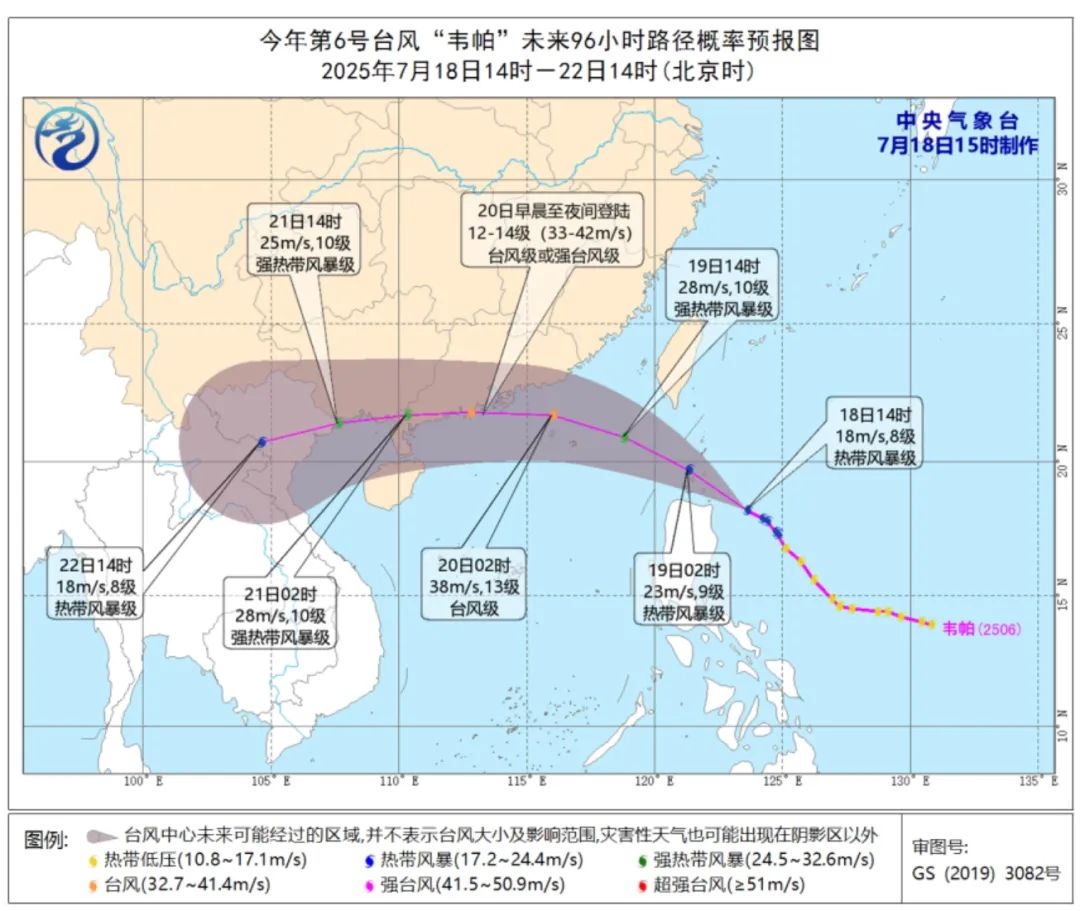 今天(18日)凌晨,今年第6號颱風“韋帕”在菲律賓以東洋麪生成,預計,19日凌晨至上午移入南海北部海面,爾後逐漸向廣東中部至海南島東部一帶沿海靠近。受其影響,廣東、廣西、海南等地部分地區將有大暴雨,局部會有特大暴雨。