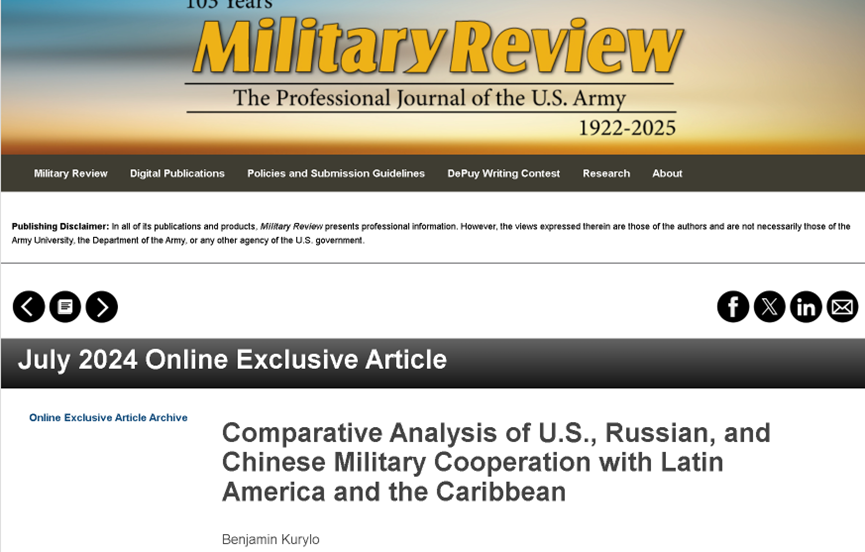 更諷刺的是,在這篇本身是在對比美國、中國以及俄羅斯與拉美和加勒比地區進行的軍事合作的文獻中,文章作者在談及中國時,不僅不得不承認中國與該地區國家的合作“主要是經濟層面”,而且根本拿不出任何中國在該地區有軍事基地的例子,結果只能拿中國與該地區國家在打擊暴力犯罪、海盜以及軍事訓練上的合作湊數。