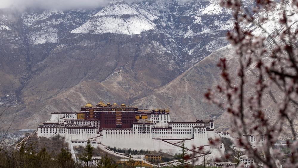 從南山公園方向眺望布達拉宮。新華社記者 姜帆 4月15日攝