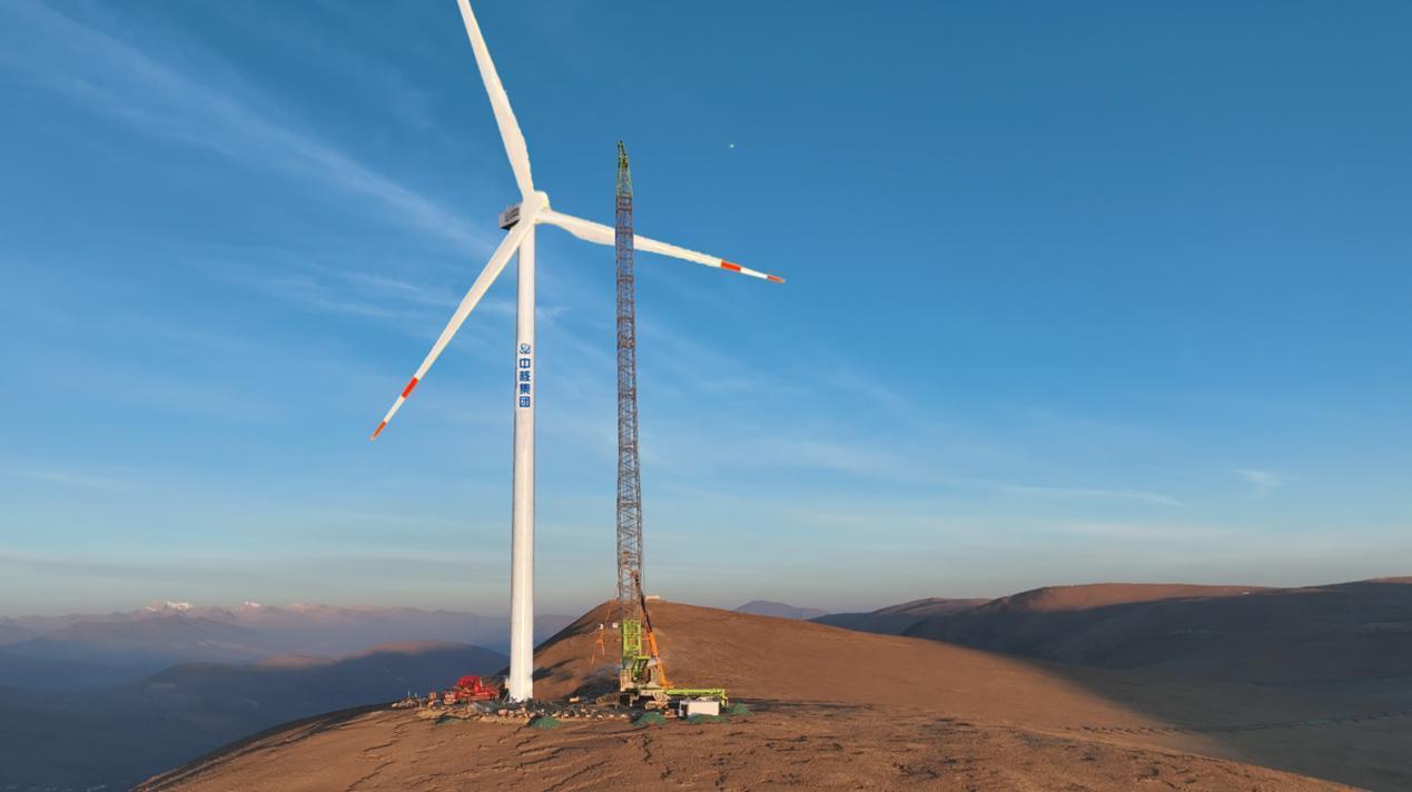 在西藏日喀則市薩迦縣中核薩迦30萬千瓦風光儲一體化場區,藍天如洗。白色風機矗立,葉片呼呼轉動;腳下草地黃綠起伏,遠處山巒明暗交錯,雲朵翻湧。蒼穹下,新能源的熱血正撞進眼底。中核(西藏)能源發展有限公司總經理 杜長春介紹,該項目是西藏自治區重點新能源建設項目,也是目前全球超高海拔地區單體容量最大的風電項目。