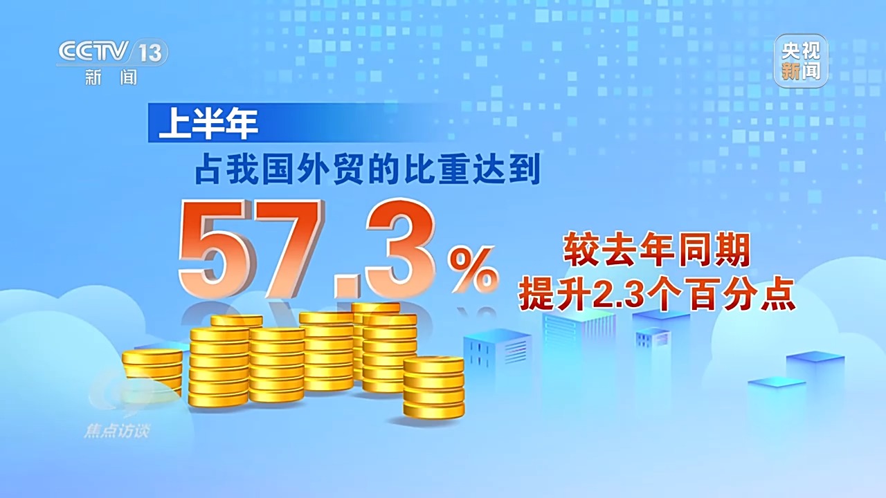 *國家統計局新聞發言人、國民經濟綜合統計司副司長 王冠華:*從運行結果來看,上半年中國外貿進出口頂住了多重不利因素的影響,規模穩中有增,質量穩中有升,特別是民營企業作為外貿增長的主力軍展現了較強的韌性。