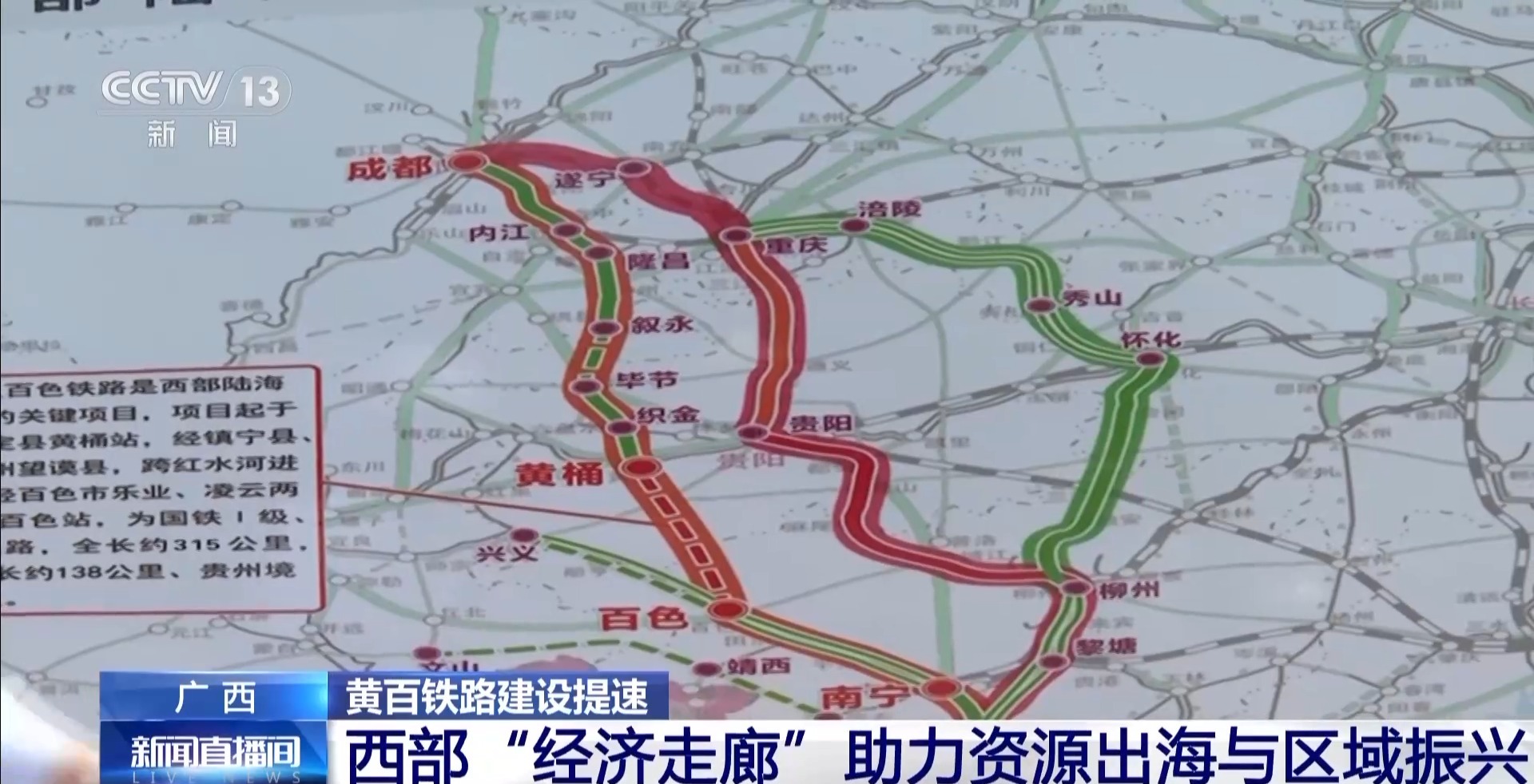 對西部地區來説,黃百鐵路堪稱一條“經濟走廊”。它有效縮短了貨物運輸距離,提升了運輸效率,使得西部資源能夠更為迅速地運抵北部灣港口,進而融入全球貿易體系。目前,工程已完成總體進度的21%,超額完成了上半年的建設投資任務,全線建設正在加速推進。