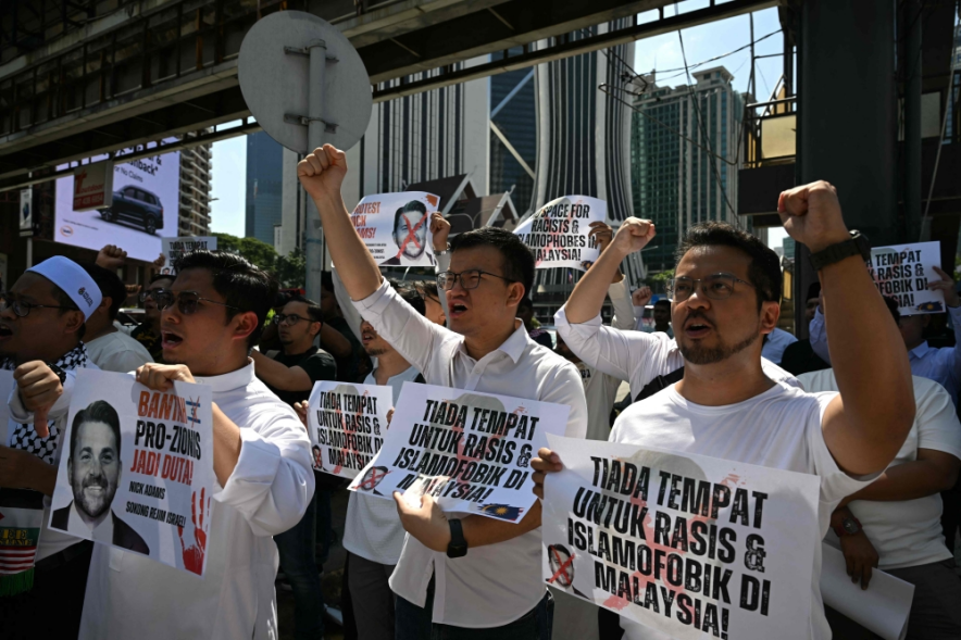 報道稱,抗議者高喊“拒絕尼克·亞當斯”等口號,手持印有亞當斯面部打紅叉的海報,部分標語還寫着“馬來西亞不歡迎種族主義者和伊斯蘭恐懼症”。