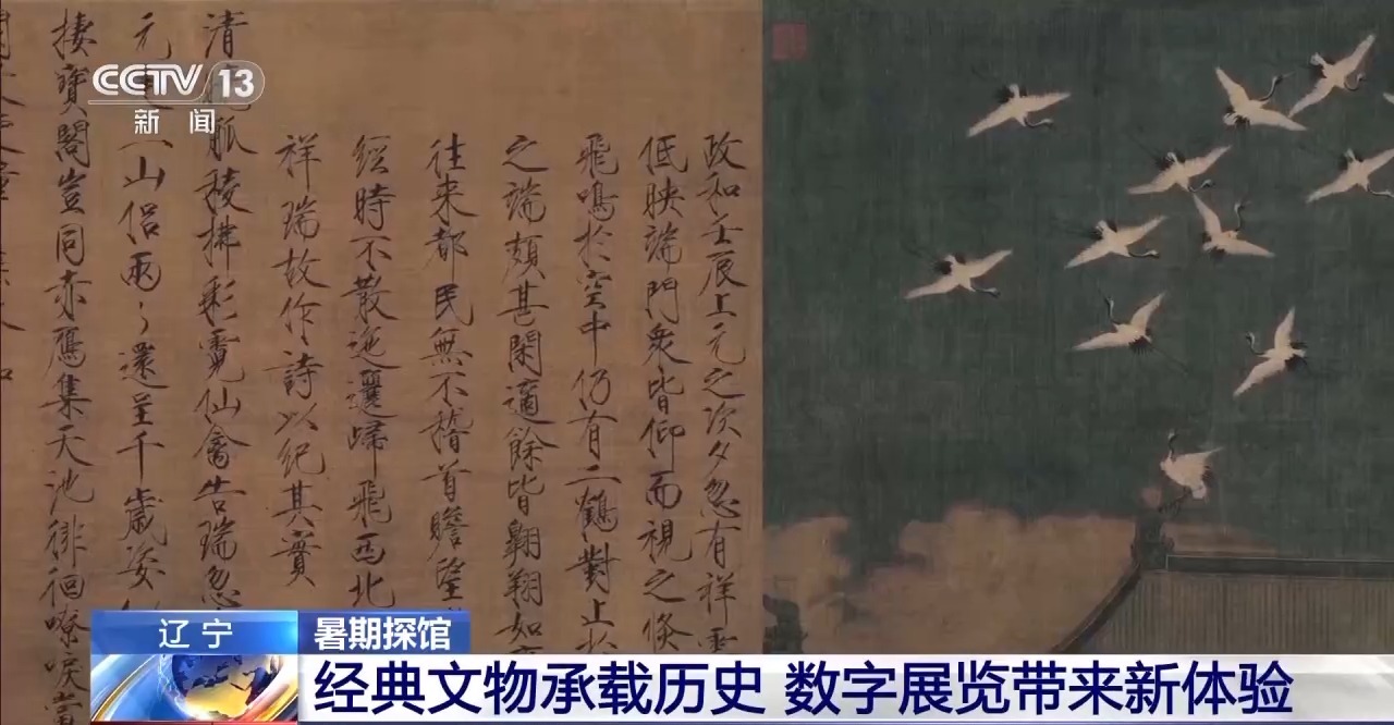 *總枱記者 楊雪:*遼寧省博物館收藏的歷代書畫在國內外的文物界都具有重要地位,但由於書畫作品保存難度很大,不方便長期展出,為了讓大家可以更加直觀地感受中華傳統文化的獨特魅力,遼寧省博物館打造出了這樣一個全數字化的展廳,推出了名為“唐宋風華——數字畫境中的藝術世界”的高科技沉浸式數字展覽。這一展覽以遼博珍藏的唐宋時期的國寶級傳世名畫為靈感來源,包括像我們大家非常熟悉的《洛神賦圖》《瑞鶴圖》等藝術瑰寶。在這個暑假當中,還會有風格不同的臨時展覽,其中最吸引大家的要數《山海有情·大漠鳴沙——在遼寧遇見敦煌》這個大型的主題展覽了。
