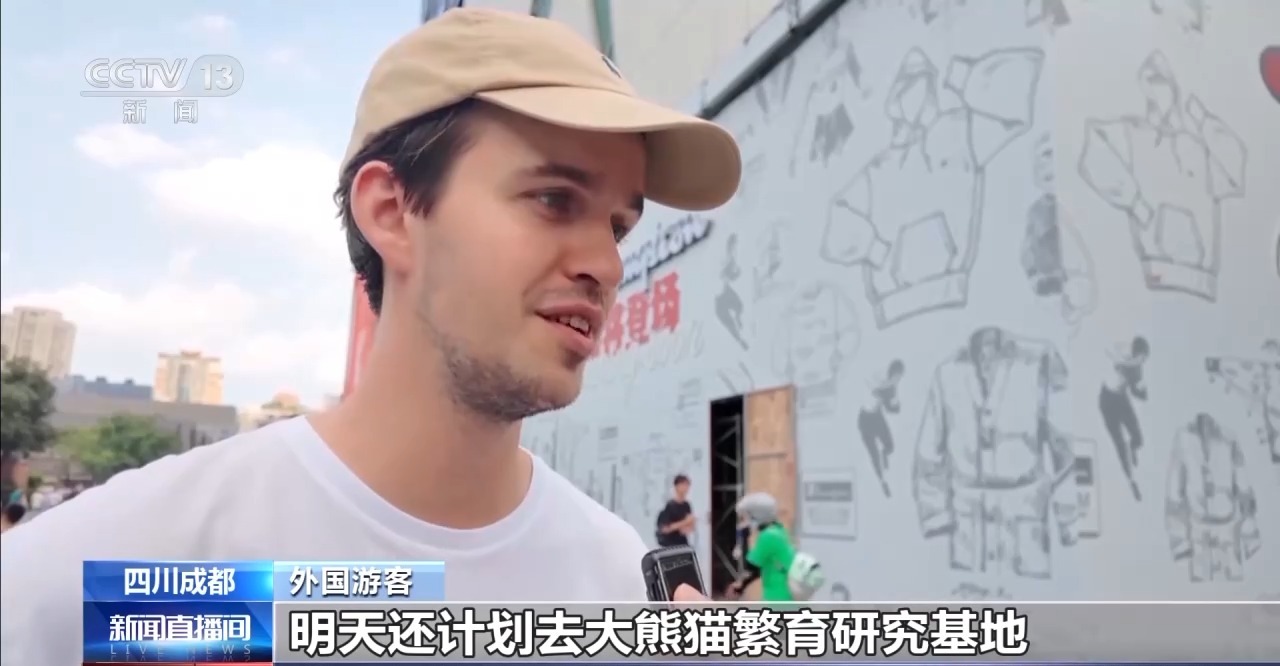 *外國遊客:*在這兒肯定要做的事就是吃火鍋,我們會去嚐嚐火鍋,明天還計劃去大熊貓繁育研究基地,真的特別期待,第一印象太棒了。
