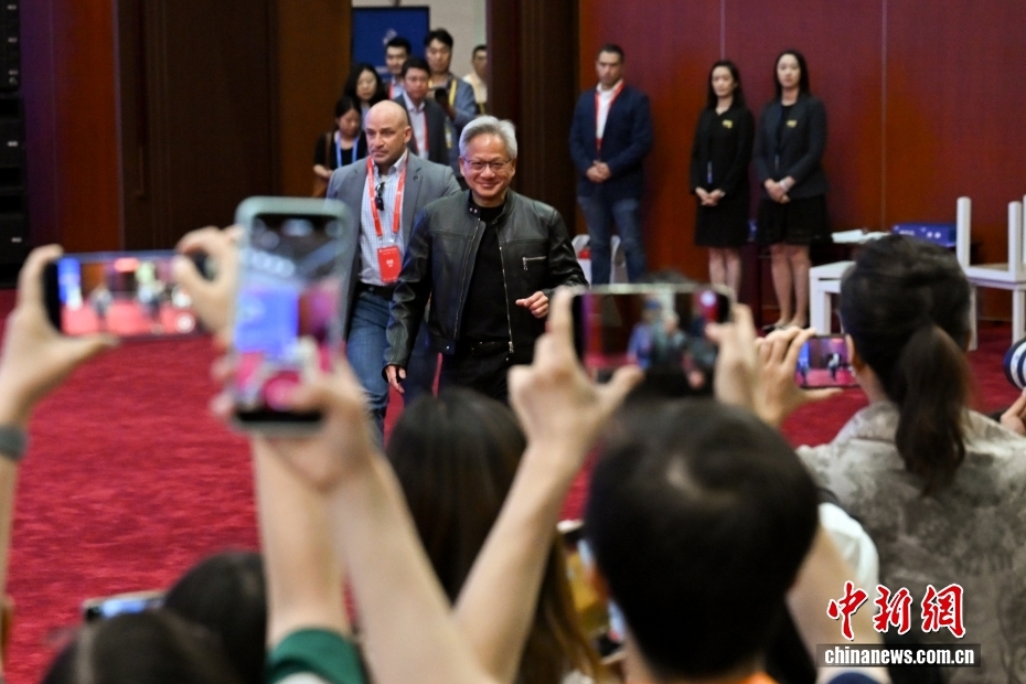 黃仁勳在第三屆鏈博會上。中新社記者 趙文宇 攝