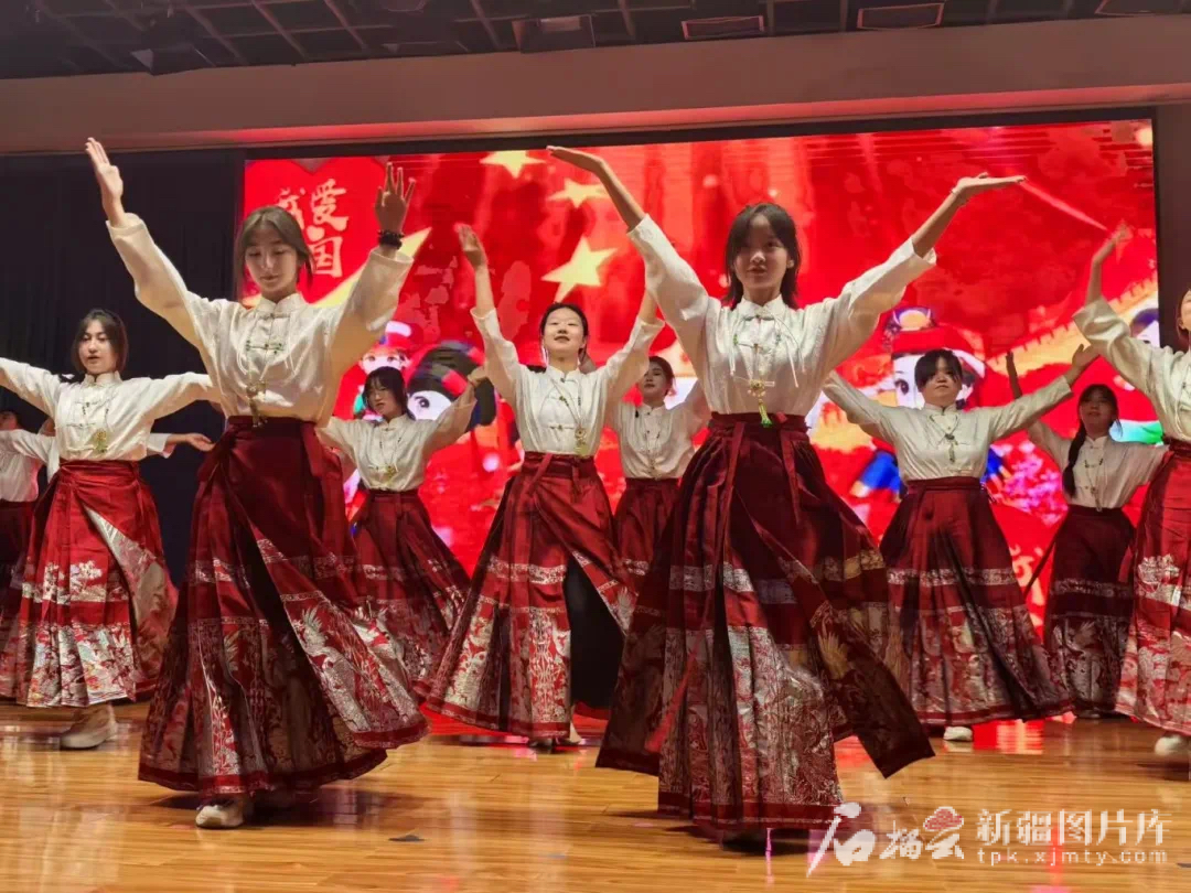 在今年武漢市東湖中學新疆高中班畢業典禮上,學生們正在進行才藝展示。圖/武漢市東湖中學提供