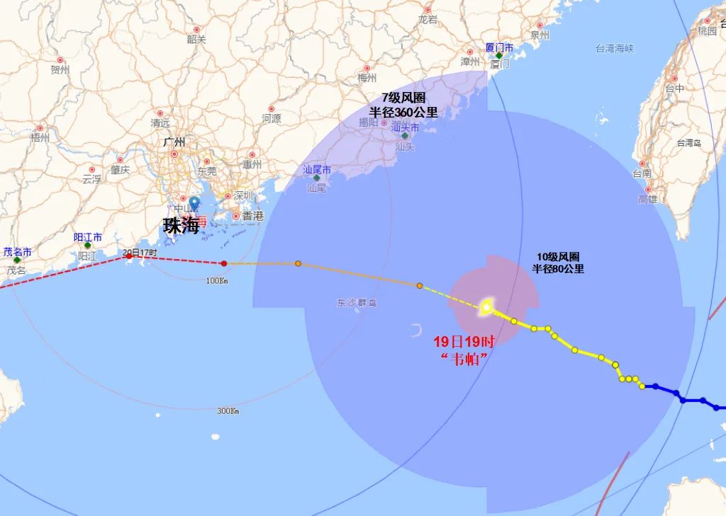 “韋帕”將對我市造成嚴重風雨影響,珠海市氣象台7月19日20時10分將全市颱風預警信號升級為橙色,請繼續做好各項防禦工作。