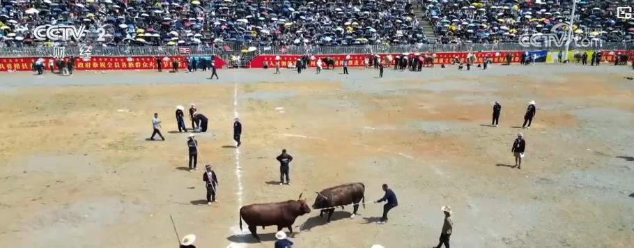 在位於四川涼山的普格縣,傳統點火儀式拉開了當地系列活動的序幕,傳統歌舞千人朵洛荷驚豔四方。身着五彩彝繡盛裝的姑娘們手持黃傘,隨悠揚旋律翩躚起舞。鬥牛比賽在普格縣火把廣場上演巔峯對決,強壯的公牛的每一次抵角、閃躲都引得現場一片歡呼。
