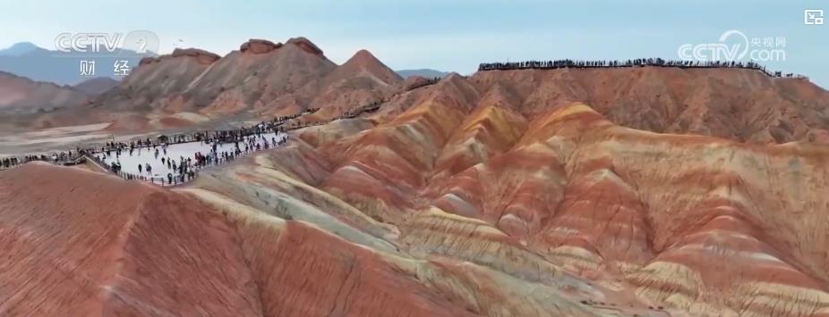 在張掖七彩丹霞景區的觀景台上,來自各地的遊客正在盡情欣賞五顏六色的丹霞美景。從7月4日開始,景區日接待遊客量穩定在2萬人次以上,11日一度突破3.1萬人次,迎來了暑期客流高峯。