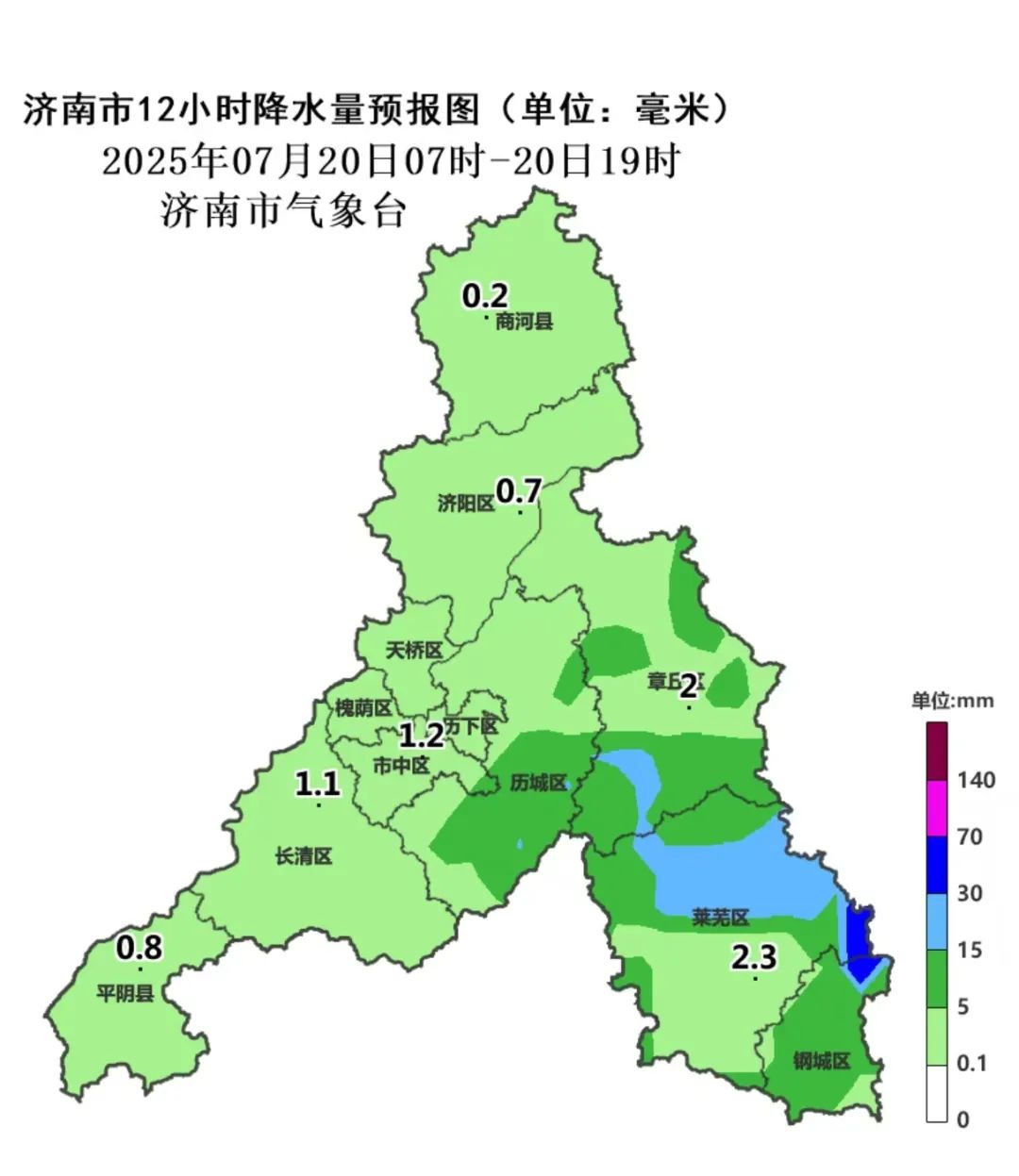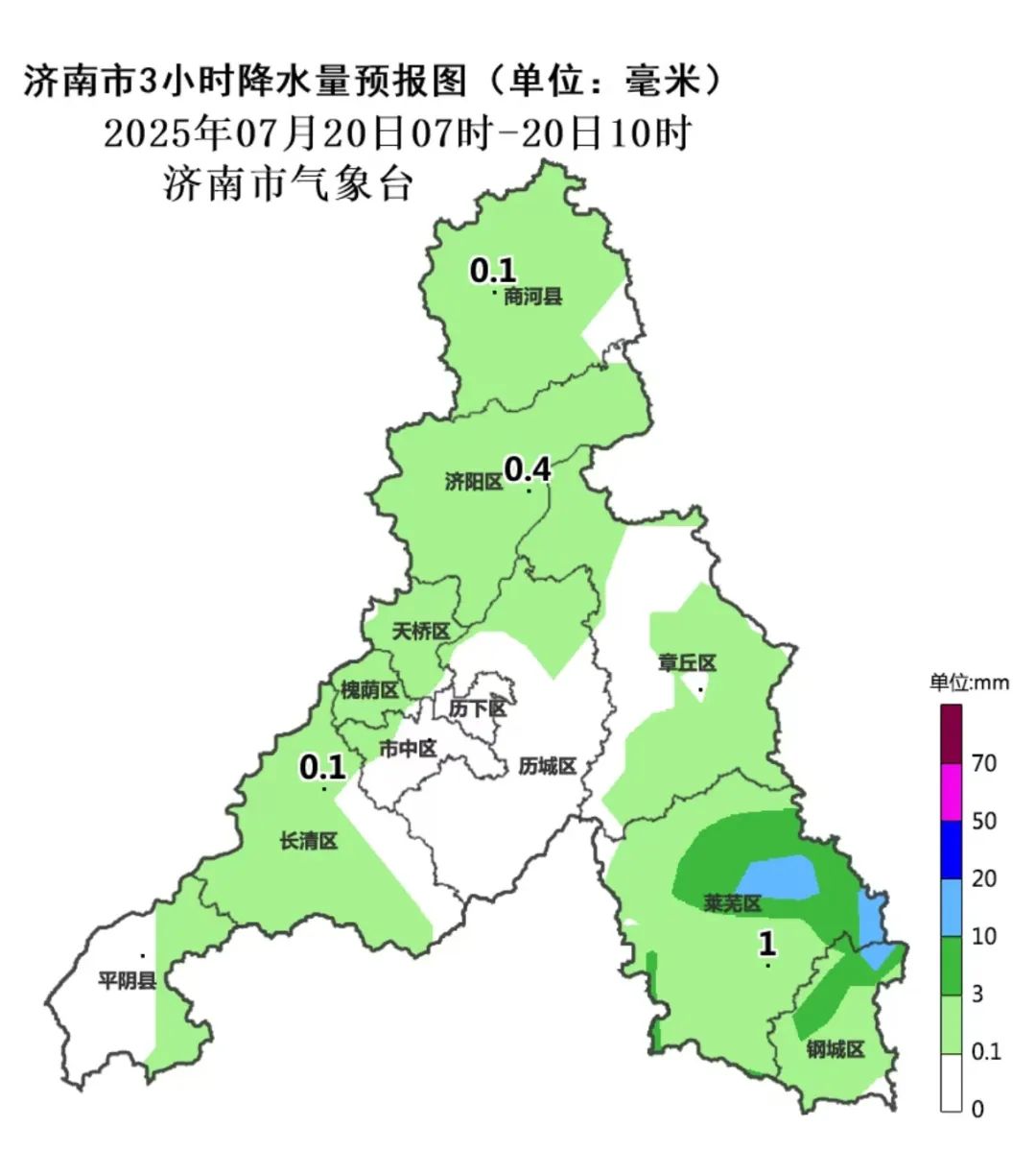 濟南市氣象台2025年7月20日06時發佈的分縣預報: