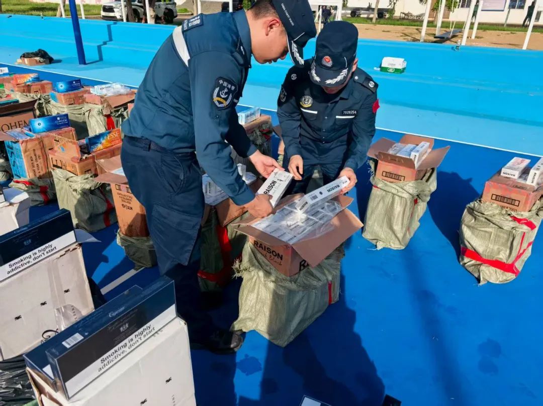 經現場檢查,船艙內藏匿大量無合法手續香煙,部分包裝上印有外文標識,且該船舶2名船員無法提供合法手續及證明。經清點,現場共查扣涉案船舶1艘、走私香煙5900餘條,案值約112萬元。目前,涉案人員及物品已被依法扣押,案件正在進一步偵辦中。