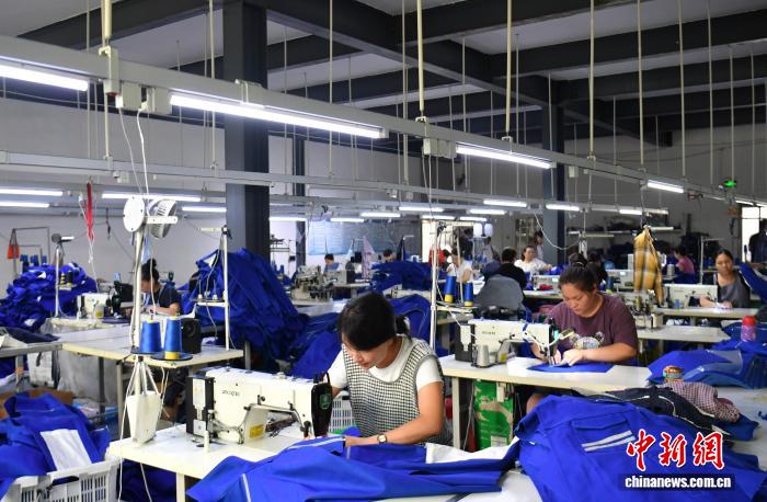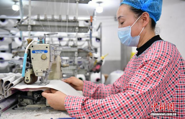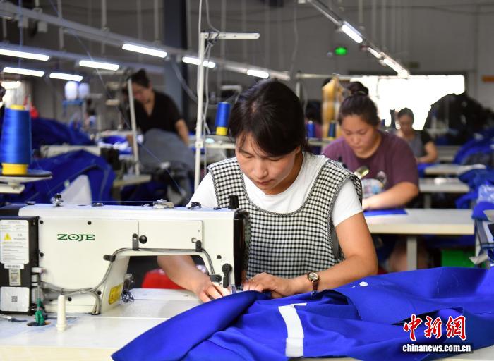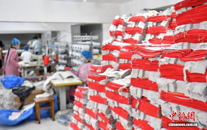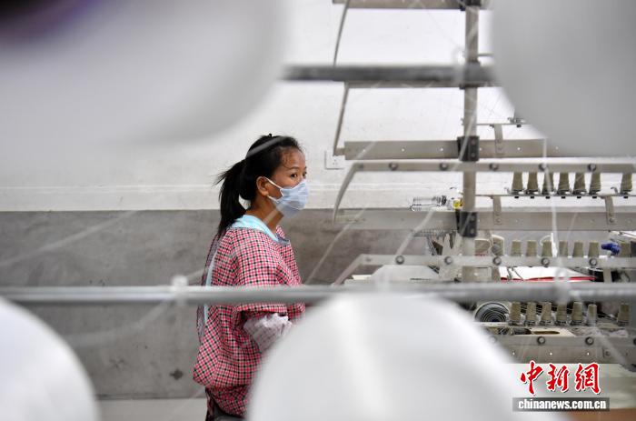 7月19日,河北省邯鄲市冀南新區光祿鎮一企業生產車間內工作人員正在生產勞保用品。有“中國勞保產業之鄉”之稱的光祿鎮,目前有勞保從業人員10萬餘人,2024年勞保手套產量達95億雙,產值60億元人民幣,其中4.75億雙由廠家直銷東南亞市場。中新社記者 韓冰 攝