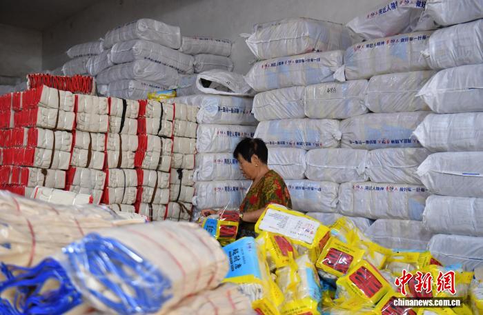 7月19日,河北省邯鄲市冀南新區光祿鎮一企業生產車間內工作人員正在打包勞保手套。