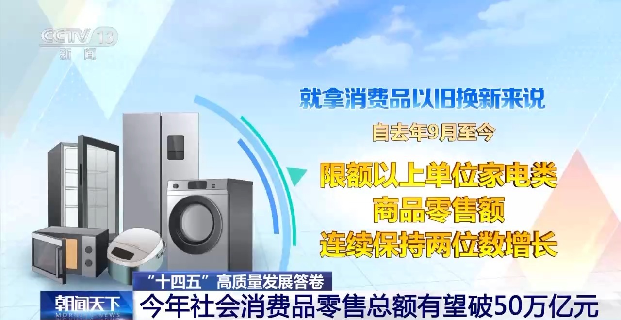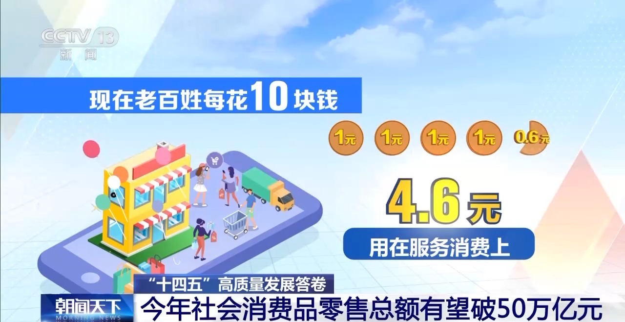 “十四五”期間,我國消費市場規模穩居全球第二,今年社會消費品零售總額有望突破50萬億元人民幣。消費對經濟增長的年均貢獻率達60%左右,一個體量更大、品質更優的消費大市場為中國經濟高質量發展提供有力支撐。