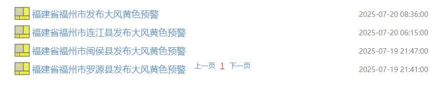 福州市氣象台2025年07月20日08時36分繼續發佈大風黃色預警信號:受颱風“韋帕”外圍環流影響,未來12小時,*晉安區(宦溪鎮、鼓山鎮等高海拔山區)和馬尾區(沿海海區和亭江鎮、琅岐鎮)*東北風6~7級,陣風8~10級。請注意防範!