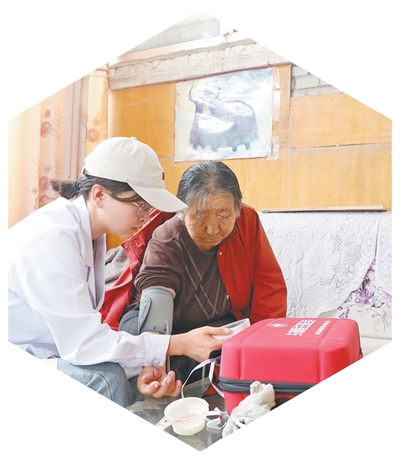 許大爺已逾70歲,見到馬學梅,他撐着手從炕上下來,熱情地招呼:“閨女,你天天忙着,還老要麻煩你。”馬學梅一邊詢問最近吃藥情況,一邊利索地為他綁上血壓帶。不久前的一個深夜,許大爺突發頭疼,馬學梅二話沒説,徒步往返3公里多,上門為他開藥。