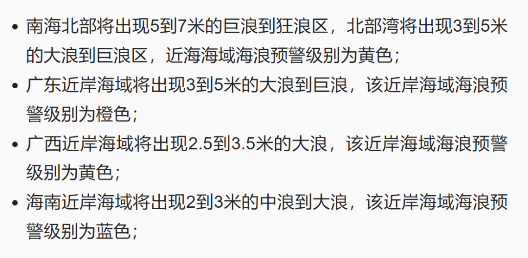 國家海洋預報台根據《海洋災害應急預案》發佈海浪橙色警報和風暴潮藍色警報。