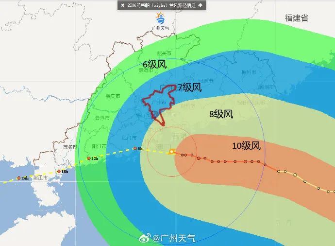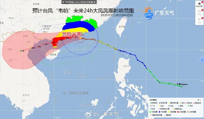 據當前最新的颱風路徑預測,廣東省珠江口及其以西地區逐漸進入颱風的危險半圓範圍,風大雨急,請務必在台風影響前,做好各項颱風防範準備工作。