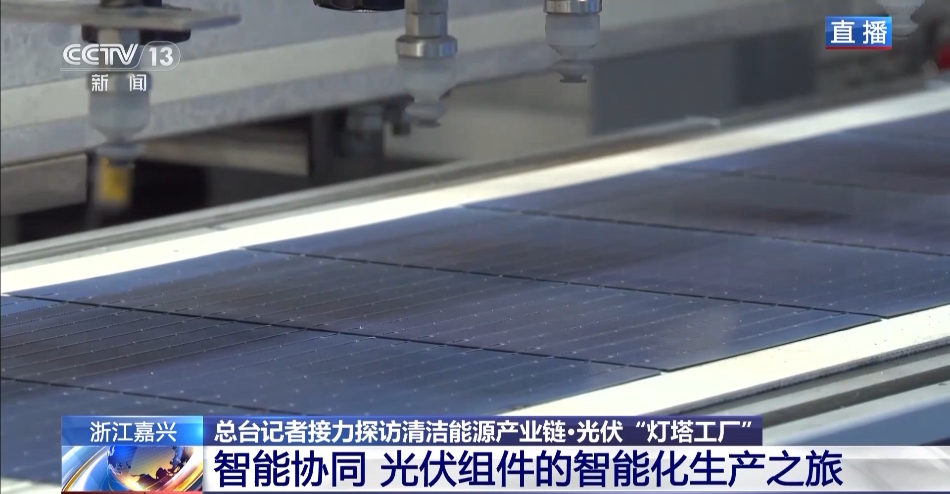 浙江嘉興這家工廠在太陽能光伏產業鏈中是“鏈主”,也就是產業鏈中核心的角色。工廠平均每16秒就有一塊太陽能板生產出來。