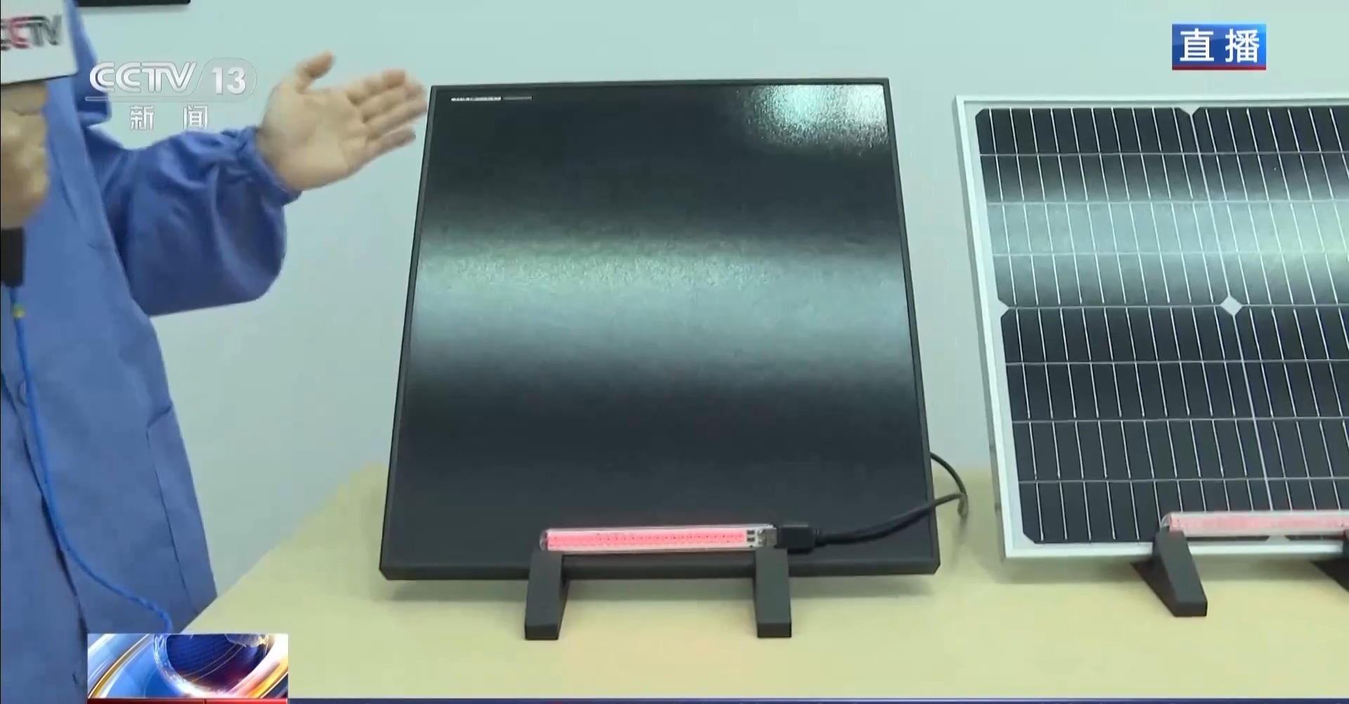 而在遮擋測試中,在同等條件下,當工作人員遮擋太陽能板同樣面積之後,新研發的太陽能板比以往的太陽能板更能帶動抽水機,解決了太陽能板在户外被落葉、灰塵等遮擋後發電效率降低的問題。類似這樣的技術創新,也帶動了全球光伏產業鏈上下游的發展。