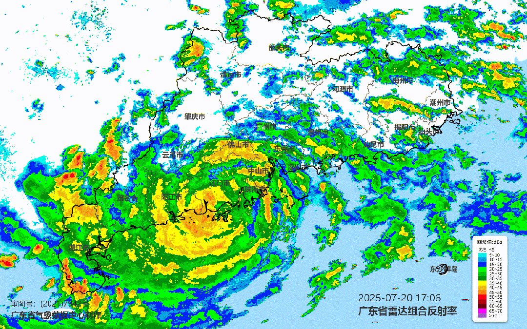 降雨具體預報:20日夜間,珠三角大部和粵西市縣有暴雨到大暴雨局部特大暴雨;粵東市縣有暴雨局部大暴雨,其餘市縣有中到大雨局部暴雨。