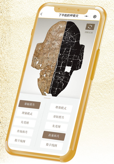 李莉每天都打卡甲骨文信息處理教育部重點實驗室開發的“了不起的甲骨文”微信小程序。小程序裏有個“每日一字”欄目,她喜歡帶着孫子一起學。“每日一字”欄目每天會選出一個甲骨文,讓讀者猜是什麼字,然後揭曉答案並給出解釋,還會用圖像演示這個字從甲骨文到金文、篆書、隸書、草書、行書、楷書的變化過程。