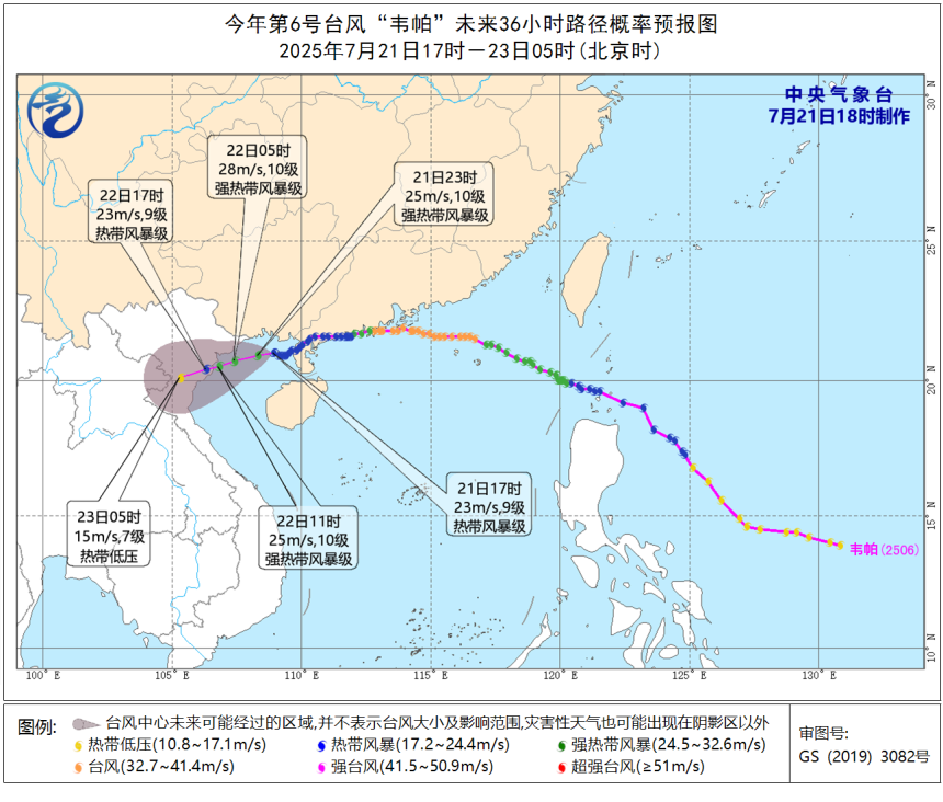 預計,*“韋帕”將以每小時10-15公里的速度向西偏南方向移動,強度還將有所加強,*並將於22日白天在越南北部沿海再次登陸(強熱帶風暴級,10~11級,25~30米/秒)。
