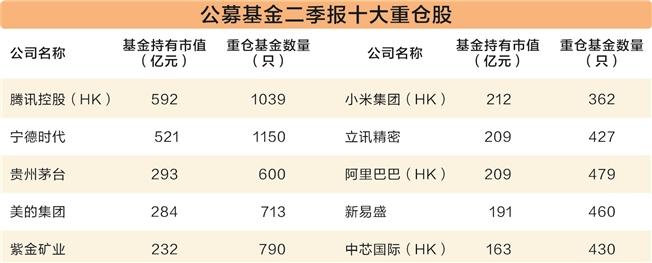 隨着公募基金二季報披露完畢,公募基金前十大重倉股最新名單出爐。