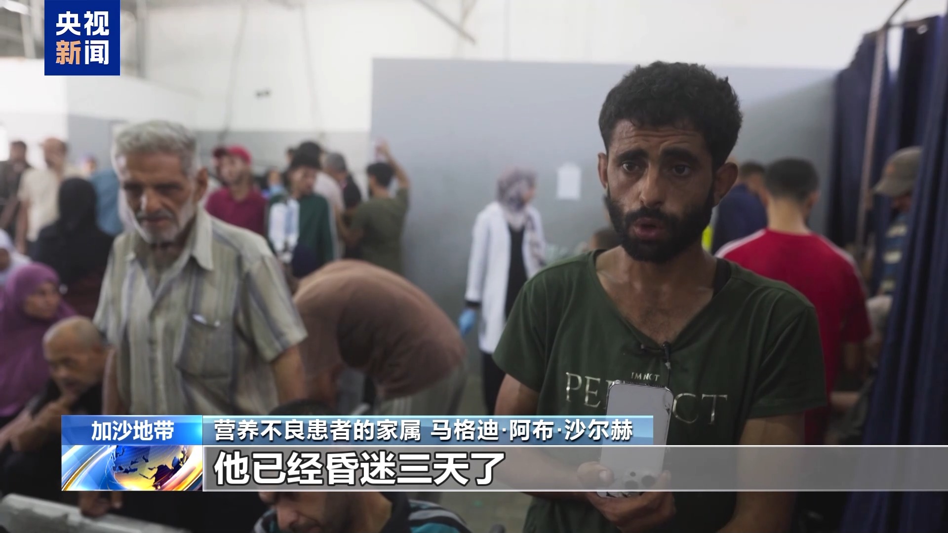*營養不良患者的家屬 馬格迪·阿布·沙爾赫:*他已經昏迷三天了,連眼前的人是誰都不知道。昨天我們只能給他喂一碗湯,這是我們唯一能提供的。今天連湯都沒有了,市場上什麼都買不到。