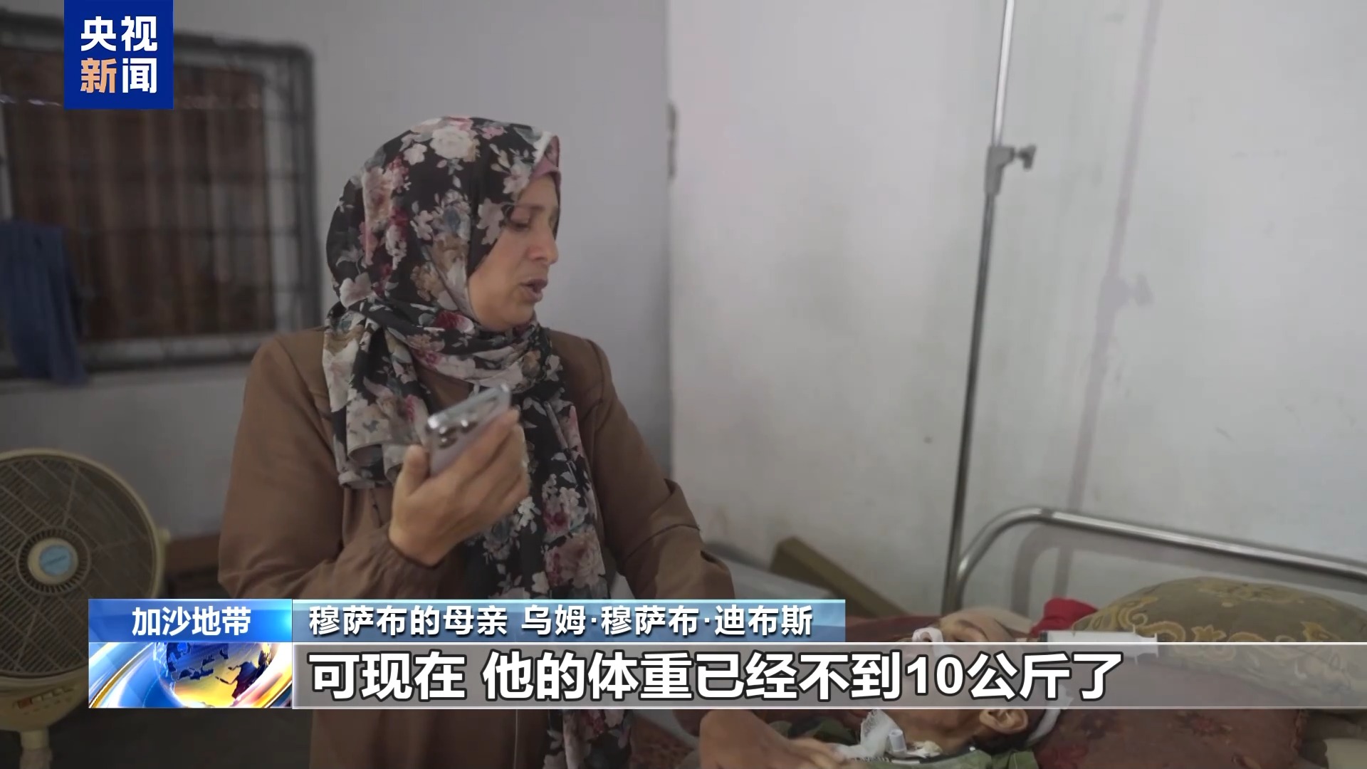 在希法醫院的一個角落,穆薩布虛弱地躺在病牀上,一旁的母親掩面哭泣。因為患有嚴重的營養不良,這個14歲的少年骨瘦如柴,臉頰凹陷、肋骨清晰可見,整個人彷彿被抽去了所有生機。他的母親説,由於醫院藥品短缺、物資匱乏,醫院很難為穆薩布提供足夠的救治,自己只能看着孩子在病痛與飢餓中一天天消瘦下去。