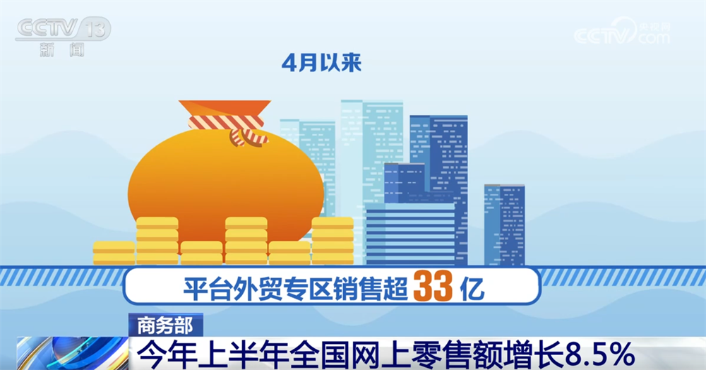 產業電商激發轉型新潛力。商務部指導20餘省市、主要電商平台舉辦超280場產業對接,覆蓋超2200家次企業,達成2萬多個合作意向。據商務大數據監測,1—6月農產品、電子產品、紡織產業電商交易額增長17.2%、7.3%、6.2%。“絲路電商”夥伴國增加到36個,與肯尼亞、孟加拉、埃及簽署電商合作協議。“絲路電商”合作先行區形成可複製推廣的10餘項創新成果,“一次申報、雙邊通關”拓展交互信息至跨境物流,與歐盟月傳送量增至3萬票。