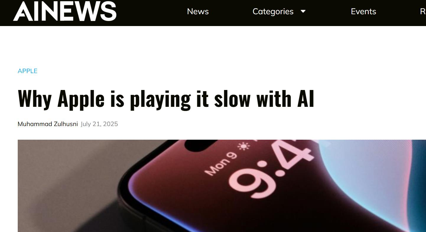 【環球網科技綜合報道】7月22日消息,據外媒AINEWS報道稱,在人工智能浪潮洶湧澎湃的當下,蘋果卻以一種相對“緩慢”的節奏推進其 AI 戰略,這一策略引發了諸多關注與討論。