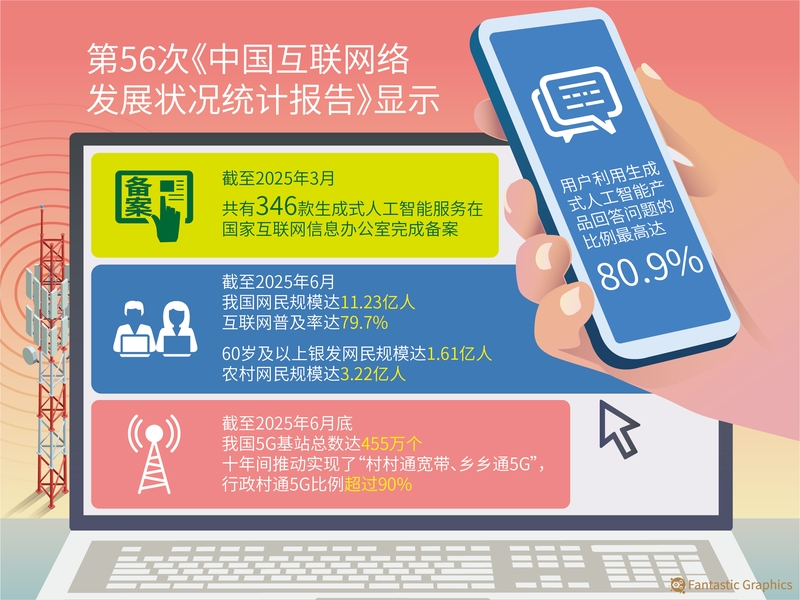 【環球網科技綜合報道】7月22日消息,根據“工信微報”官方信息,中國互聯網絡信息中心(CNNIC)日前發佈第 56 次《中國互聯網絡發展狀況統計報告》。報告顯示,截至 2025 年 6 月,我國網民規模已達 11.23 億人,互聯網普及率攀升至 79.7%。