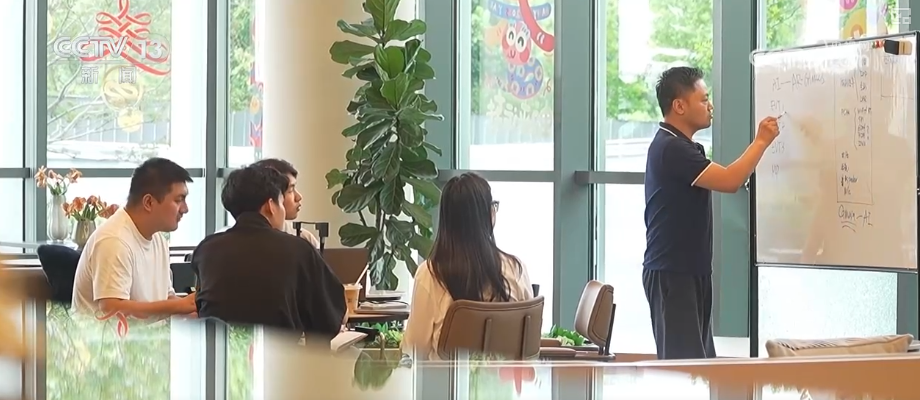 在視谷,樓下的咖啡廳是園區裏最熱鬧的地方。同一桌上坐着的往往都是不同的企業,一塊白板就能碰撞出產品研發思路,喝杯咖啡的時間新的創意就出來了。