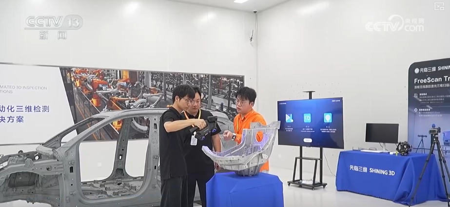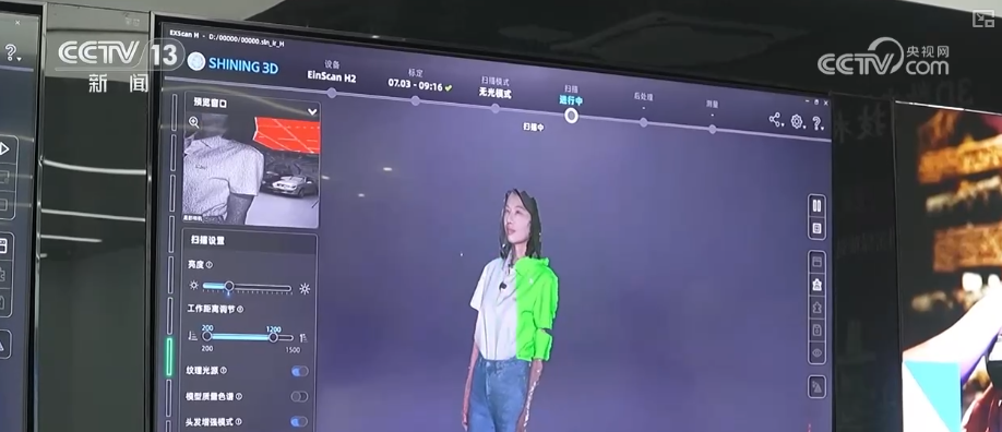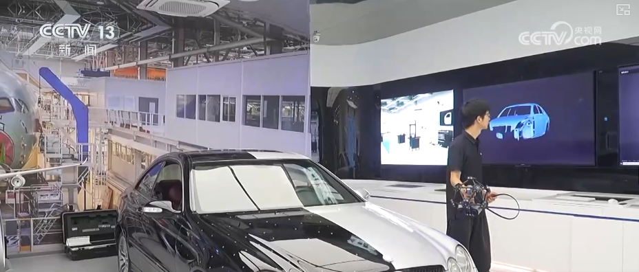 用這個設備輕輕一掃,就能實現對真實物體的高精度3D建模。掃描小件,精度能達到5微米,相當於頭髮絲的十分之一。掃描大件,只需要8分鐘就能得到一輛汽車的三維數據。這樣的高精度三維視覺技術還可以即時生成“數字人”。