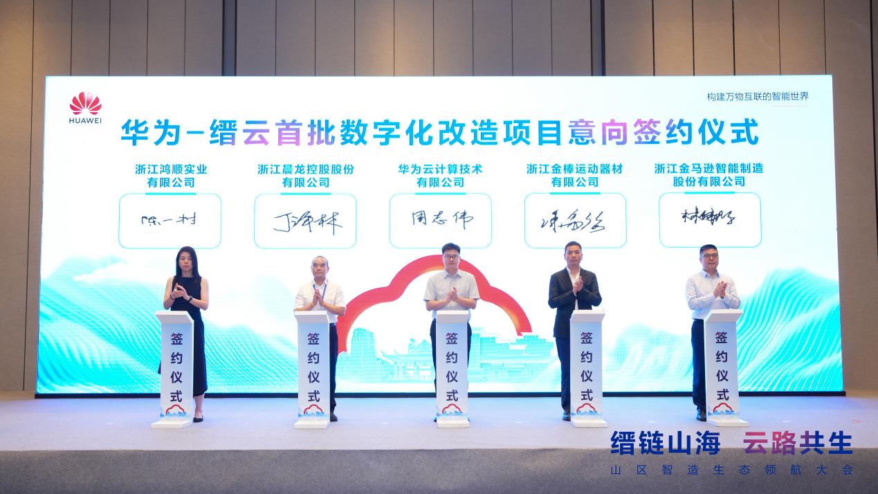 7月20日,“縉鏈山海·雲路共生——山區智造生態領航大會”在麗水縉雲召開。會上,華為(縉雲)數字經濟賦能中心正式揭牌,並進行了華為與縉雲首批數字化改造意向項目集中籤約,標誌着麗水山區製造產業智能化轉型邁入新階段。