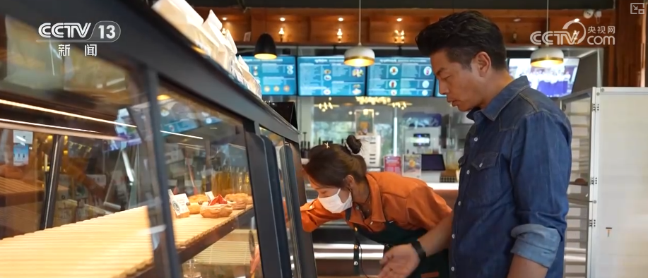 更加生態、更加宜居的生活環境,也必然吸引着遠方歸來的孩子。阿旺丹增結束在上海的工作學習回到家鄉,並選擇在河邊開了這家烘焙店。每天臨近傍晚,丹增的麪包店都是即將售罄的狀態,他的小店也像是嵌入人們日常生活的一部分。