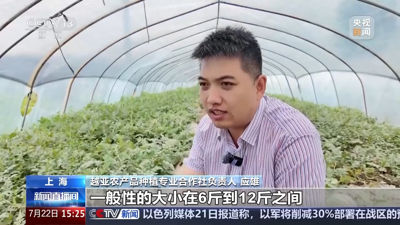 越亞農產品種植專業合作社負責人 應雄:“南匯8424”屬於中果型,大小一般在6斤到12斤之間,口感爽口脆甜,有種入口即化的感覺,一般糖度在11度到13度。4月中下旬“南匯8424”就開始陸陸續續上市,到8月中旬差不多就結束了。