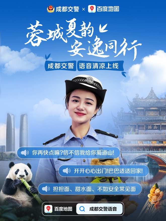 除此之外,百度地圖憑藉其智能語音交互系統,支持該語音包在駕車、騎行、步行等7大類50餘個場景中進行精準調用。而由成都交警曾舒婉警官錄製的提示音,更是別具一格。比如夜間行車時的提醒“黢黑的~把燈打開三!”,在專業的交通指引中融入了濃濃的生活煙火氣。