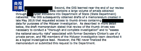 當地時間21日,美國司法部公佈了一份最新解密的司法部監察報告文件,涉及美國聯邦調查局(FBI)對前國務卿希拉里·克林頓“郵件門”事件進行調查的處理情況。