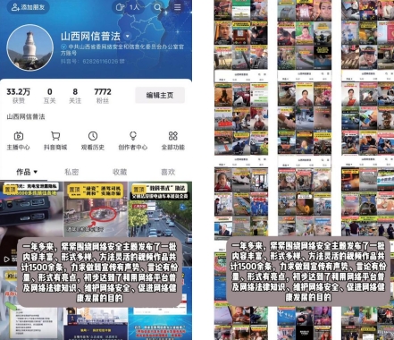 此外,山西注重羣眾參與式創新,讓普法從“單向傳播”走向“全民共創”。太原市以“123 工作思路”為指引,發動羣眾文藝骨幹組建245支法治文藝演出隊,6900 餘名羣眾化身“普法宣傳員”,通過短視頻、直播等形式演繹身邊法治故事,實現了“專業普法”與“羣眾參與”的雙向互動。該模式獲司法部肯定並在全國推廣,在互聯網平台大放異彩,放大了科技普惠價值。