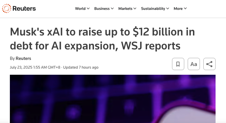 【環球網科技綜合報道】7月23日消息,據多家外媒報道,埃隆·馬斯克旗下人工智能初創公司xAI正與一家未具名金融機構合作,計劃為擴張計劃籌集至多120億美元資金。這筆資金將主要用於大規模採購英偉達最新一代AI芯片,並租賃給xAI用於建設一座專為訓練和運行其AI聊天機器人Grok的大型數據中心。