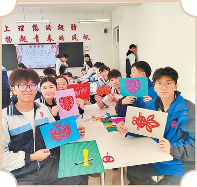 二連浩特第一中學的蒙古國學生體驗中國剪紙並展示作品。