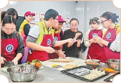 二連浩特第一中學的中蒙兩國師生在包餃子。